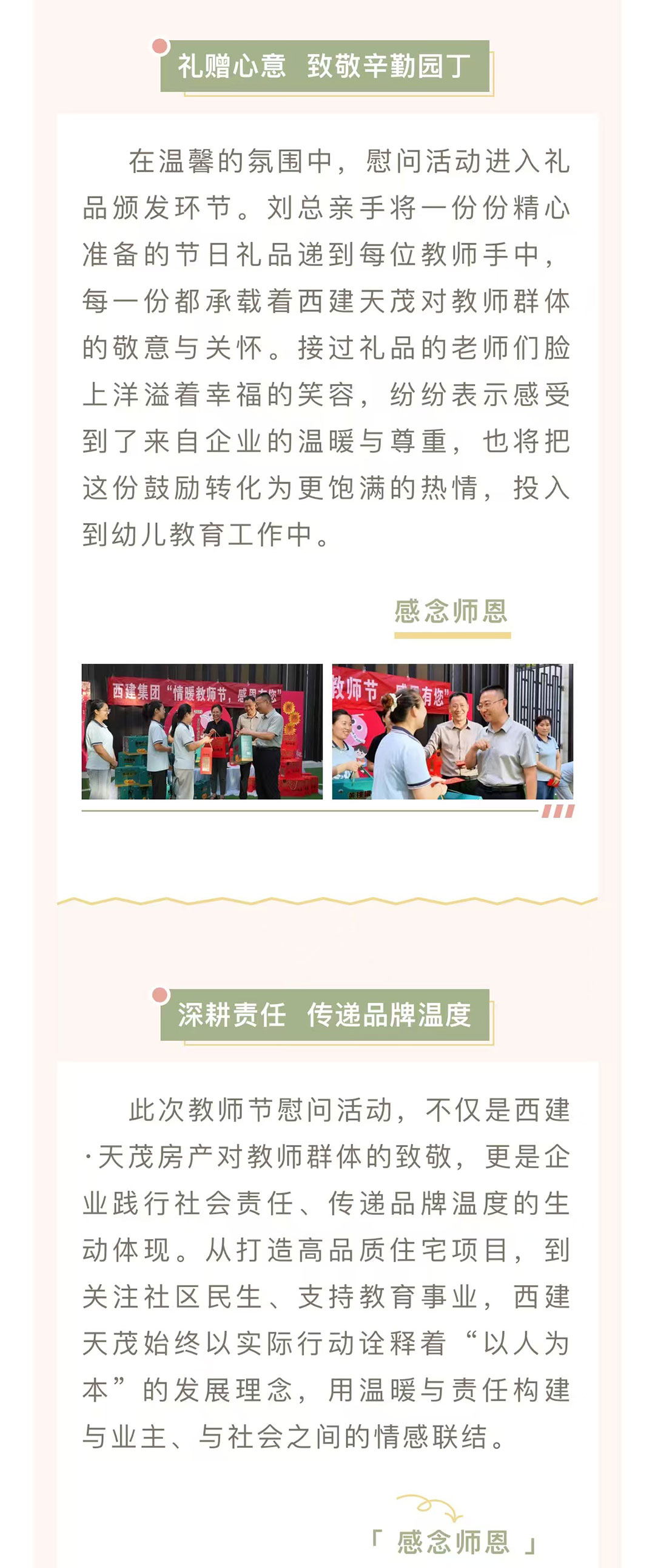 情系園丁 禮贊師恩 | 西建·天茂房產劉忠森總經理帶隊慰問天茂城、上郡幼兒園教師